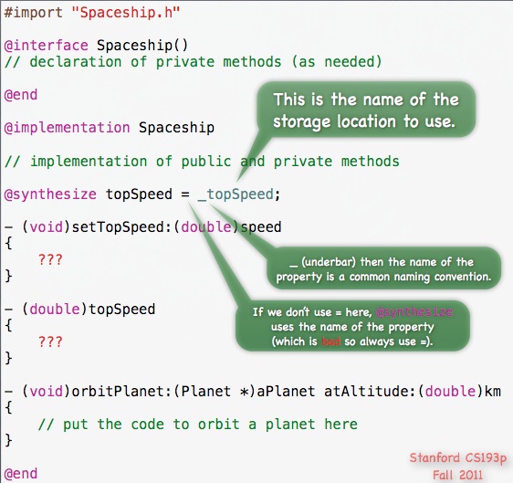 从图中可以看到,该课程推荐大家在使用 synthesize 关键字时,为 property 设置一个下划线前缀。我也看过一些 iPhone 的开源项目,比如 facebook 开源的 three20 ,它是遵守了这样的约定的。