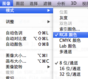 我在使用以上方法时,发现由于 imagemagick 压缩比太高,生成的图片如果象素太小,它就会生成索引图片,而不知道何故,少量索引图片在 iPhone 3GS 上会显示出一条黑线在图片底部。对于这些图片,用 photoshop 将其模式改成 RGB 颜色即可。如下所示: