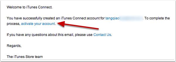 7、之后,邮箱中会收到 iTunes Connect 发来的激活邮件。