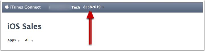 其中 vendor Id 在 iTunes Connect 的如下图所示位置获得,是一个数字 8 开头的序列。