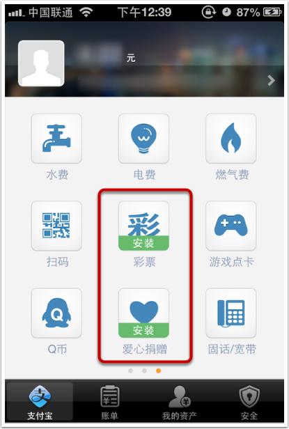 先介绍一下该插件机制,如上图所示,支付宝客户端在安装后,对于像 “彩票”、“爱心捐赠” 这类功能,需要再点击安装一次,然后才可以使用。有些时候该插件功能进行了升级,需要点击升级才可以继续使用。插件的方式有利于软件动态增加新的功能或升级功能,而不用再一次向 AppStore 提交审核。另外,由于用户不需要的插件可以不用安装,也缩小了应用本身的体积大小,节省了下载流量。