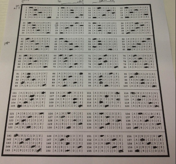 但是,用户如果在纸上答题,无法方便地将答案上传到我们的服务器上。如果我们没有了用户做题数据,就无法根据他的成绩,做针对性的推荐和分析。所以,我们想到一种办法: 用户像传统考试那样,将答题结果填涂在答题卡上,然后我们提供一种用手机摄像头采集填涂结果的答题卡扫描算法,方便用户上传答题数据。