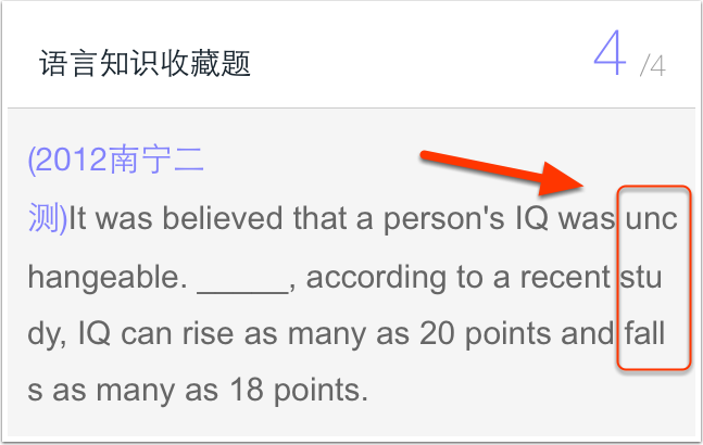 我们设置的是按单词换行,但是总是有些题目的换行并不是按单词的,造成显示上比较错乱,如下图所示。图中 unchangeable, study, falls 三个单词都被生生截断了,造成阅读上的不适。