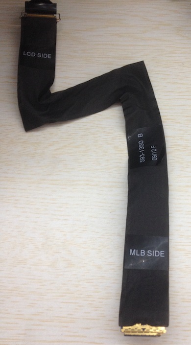fusion drive。不过更换方式就要相对麻烦一些,感觉兴趣的可以自己在 ifixit 上找相关的教程。 - 显示屏上的连接线都很脆弱,更换的时候要小心,我在尝试能否象 27 寸 iMac 一样同时将原有硬盘和 SSD 保留的时候,就不小心压坏了显示屏上的连接线的一根针角。于是花了 80 块钱在 淘宝 上重新买了一根线才安好。所以大家一定别着急,换的时候小心一些。附一张损坏的连接线照片。