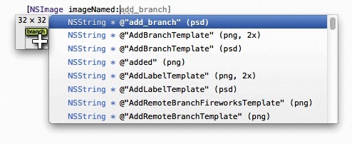 KSImageNamed(https://github.com/ksuther/KSImageNamed-Xcode)是一个帮助你输入 [UIImage imageNamed:] 中的资源名的插件。当你输入[UIImage imageNamed:]时,会自动的弹出上下文菜单,供你选择你需要输入的图片资源名字,另外在选择图片资源时,还可以在左侧预览该资源。如下图所示: