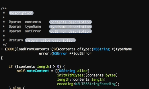 VVDocumenter(https://github.com/onevcat/VVDocumenter-Xcode)是一个自动生成代码注释的工具,可以方便地将函数的参数名和返回值提取出来,这样结合上一节介绍的appledoc命令,就可以方便地将帮助文档输出。