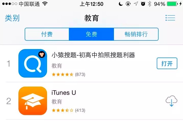 下图是小猿搜题登上 AppStore 教育榜榜首的截图。