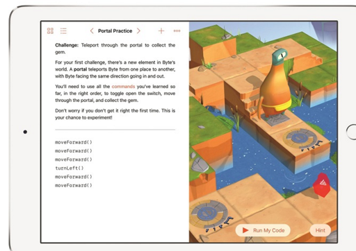 这次 Tim Cook 专门介绍了针对开发者做的 iPad 版的 Swift Playground,其实这哪是一个 Playground 啊,这就是一个学习编程的 3D 游戏!整个 App 设计得非常用心,效果看起来也非常棒,下面是这个应用的界面,大家感受一下。