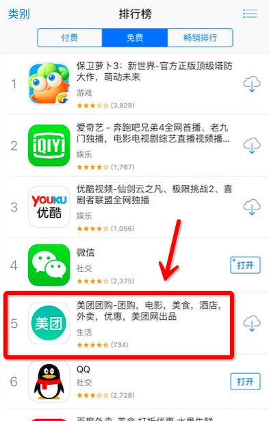 就在发稿前,美团在 AppStore 排名总榜第五(下图)。
