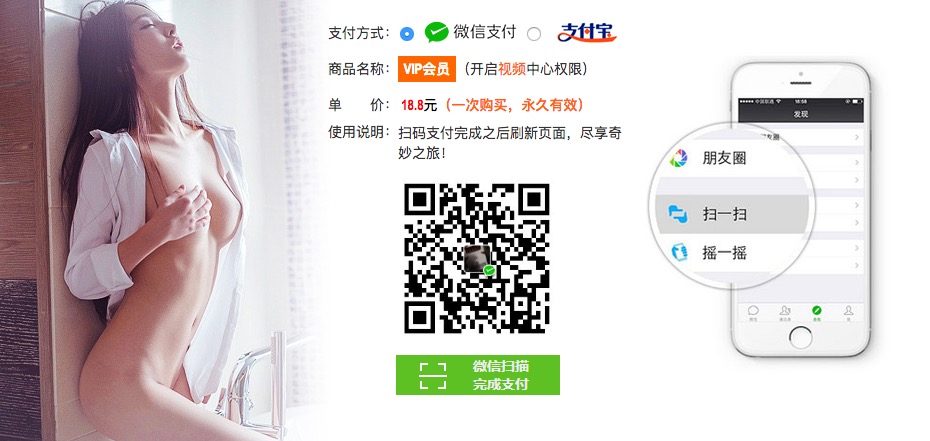 这个页面明显是一个骗人的假页面,因为上面描述的是:「付款之后刷新页面,尽享奇妙之旅」。我理解「奇妙之旅」应该就是可以播放视频吧。但是,这个付款的二维码是一个微信支付的二维码,所以,所有用户看到的二维码是一样的。