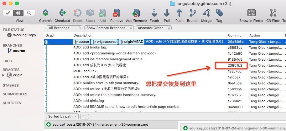 有些时候,在一些特殊情况下,我们需要将代码恢复到一个历史的提交版本上。而这个历史提交版本,离最新的提交已经比较久远了。