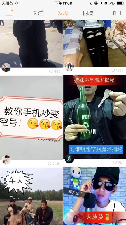 由此我们看出,快手在刻意压制产品的媒体属性,强调社交属性,快手为什么要这么做,等我们看完快手的另一个特点再一起分析.