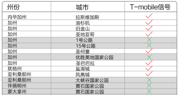 所以如果你查 T-Mobile 的网络覆盖图的话(下图),你就会发现,连一号公路和优胜美地这些重要景点,T-Mobile 都是没有信号的。