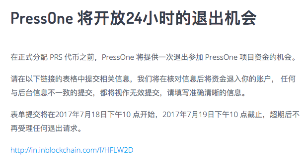 就连李笑来本人可能都认为投资者太疯狂了。在 PressOne 的官网上,没有项目的详细白皮书,但是却有关于该项目风险的明确提示。另外 PressOne 还提供了一个开放 24 小时的退出机会。我相信李笑来也希望 PressOne 的投资者是理性的,有风险意识的,这样对于项目的成功和失败才会更加坦然,而不是抱着投机的心态。