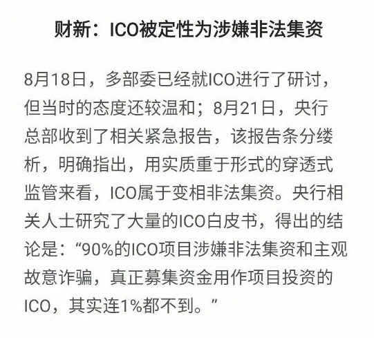 另外,据财新的报道,ICO 被监管认为是变相的非法集资。