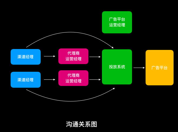 广告主的渠道经理主要和代理商的渠道经理对接,共同通过操作广告平台的投放系统,来完成广告的投放。在这个过程中,广告平台的运营经理,会特别关照一些大的投放客户。