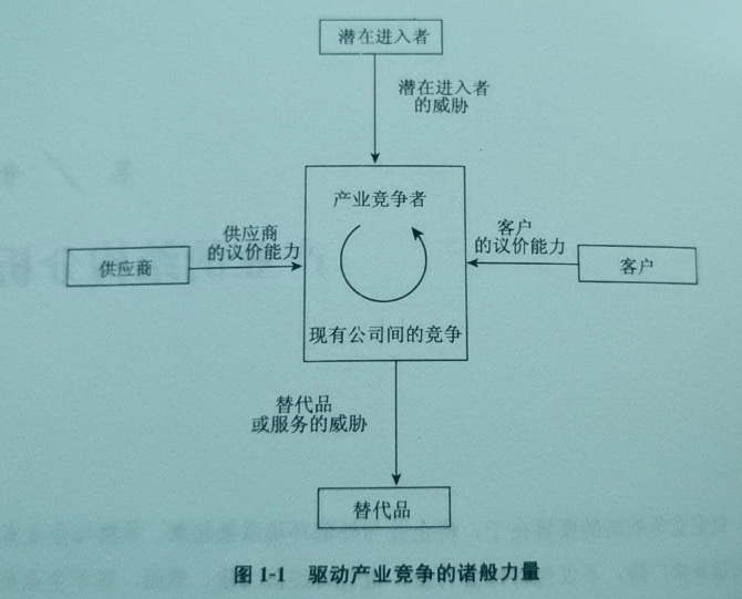 波特首先分析了竞争的五种力量: