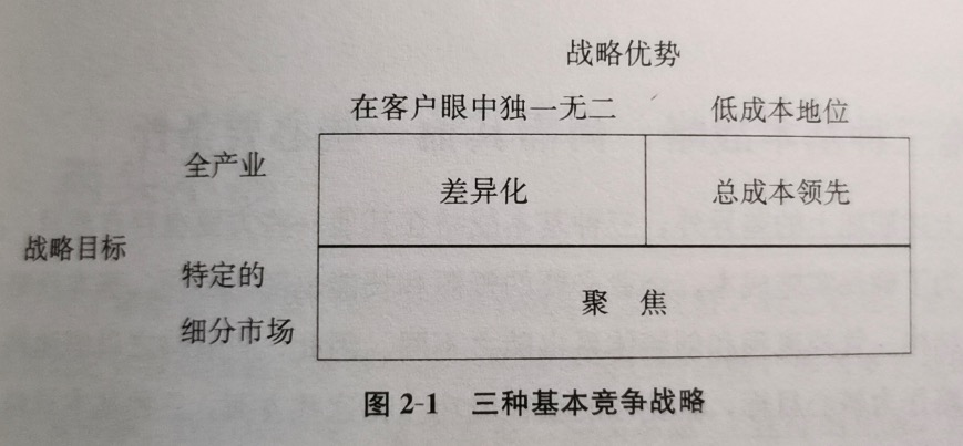 本书对我理解竞争最有价值的就是以五种力量来框架性分析竞争的各种因素,并且把有效的竞争战略分为 成本领先、差异化、聚焦 3 种。