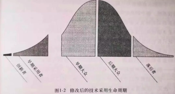 作者认为早期大众和后期大众各占 1/3,其他人占 1/3。
