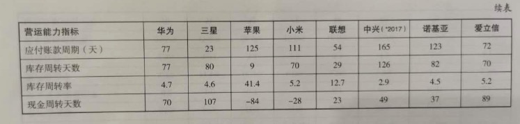 要做到这个指标,库存周转天数非常重要,苹果只有 9 天的库存,这使得它的周转非常快。与之对比的是,华为库存周转是 77 天。