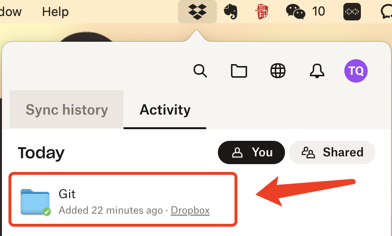 5、看了一眼 DropBox 状态,它很快就将代码同步到了云端。