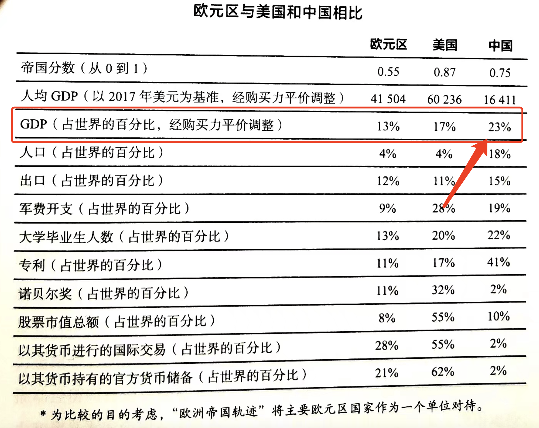比如:达瑞欧在书中写到,按照购买力平价折算,中国的 GDP 的总量已经超过了美国,达到了全球 GDP 的 23%(如下图)。