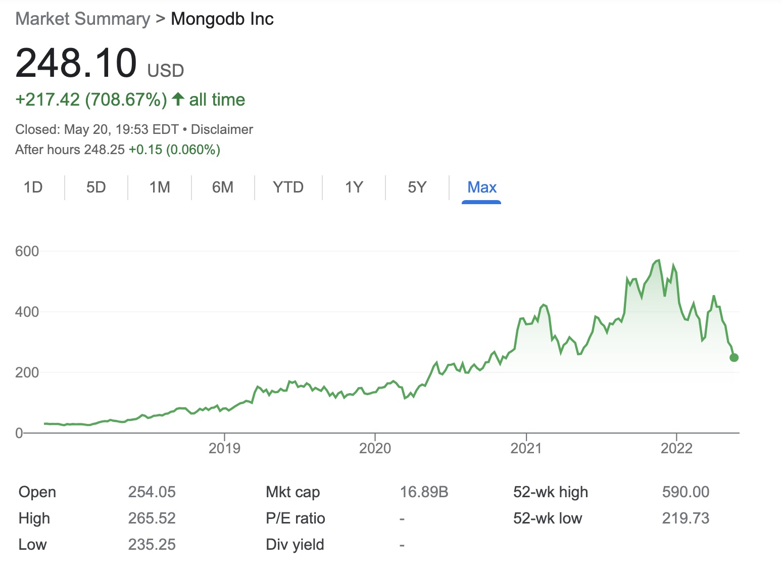 图 3:MongoDB 的股价走势