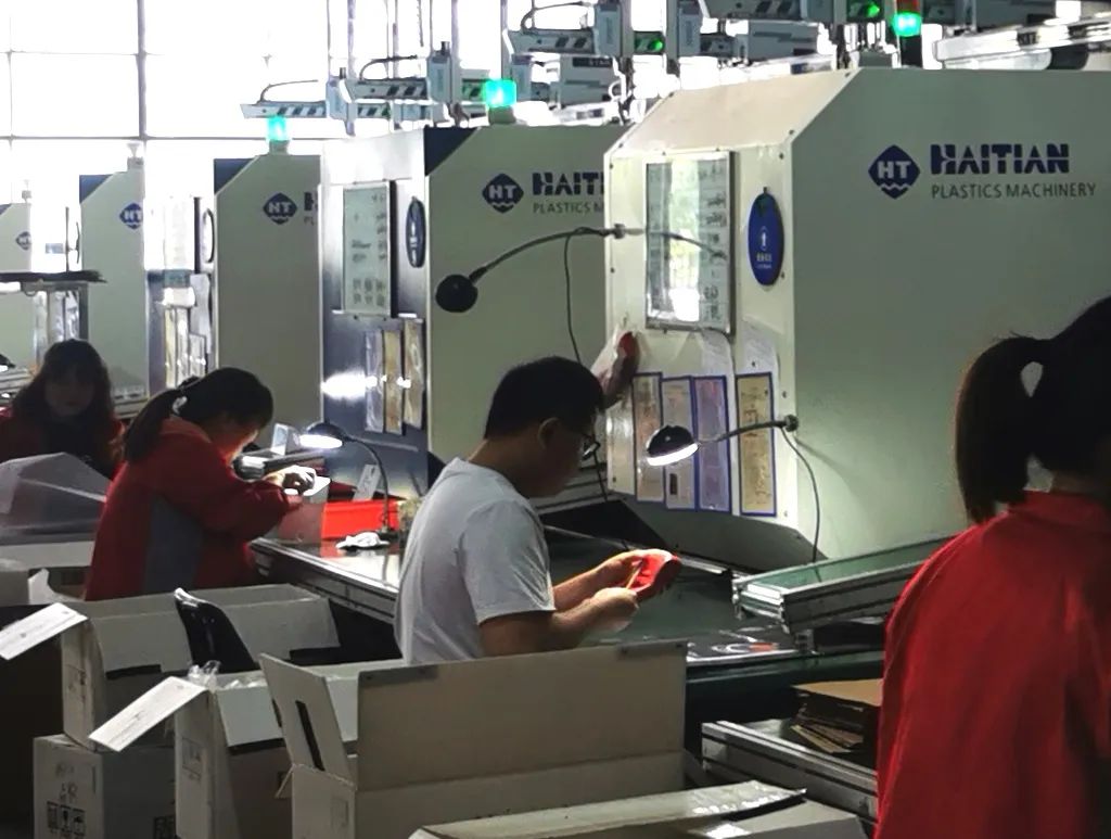 根据不同产品的特点不同,有些产品需要在注塑出料位置安排工人进行处理,处理的常见步骤包括:修剪水口,外观检查,打包等等。
