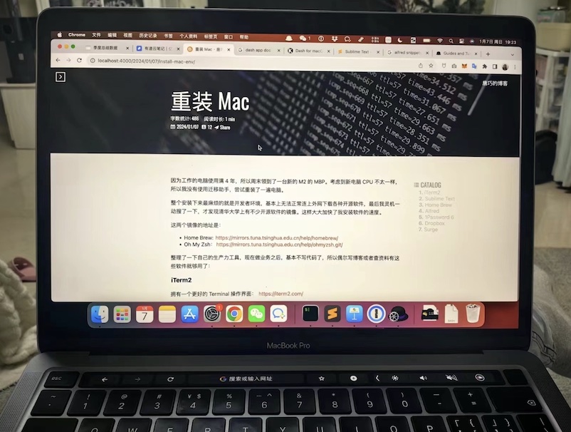 因为工作的电脑使用满 4 年,所以周末领到了一台新的 M2 的 MBP。考虑到新电脑 CPU 不太一样,所以我没有使用迁移助手,尝试重装了一遍电脑。