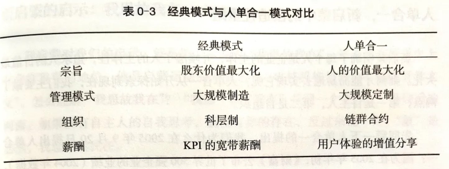2、这本书有足足 600 页厚,最主要的观点就是“人单合一”。全书的访谈中多次重复提到这个观点,但是对观点的阐述多集中在原理层面,但在执行层面上的难度,张瑞敏虽然有多次提及,但是却没有系统的说明。