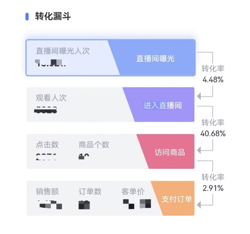 下图是一个案例,呈现出了某个电商直播间的转化漏斗。