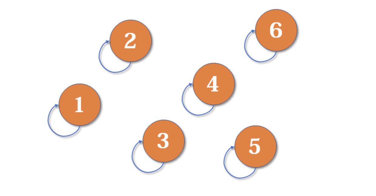 我们用数组来表示并查集,用数组的值表示当前结点的父亲。如下图所示: