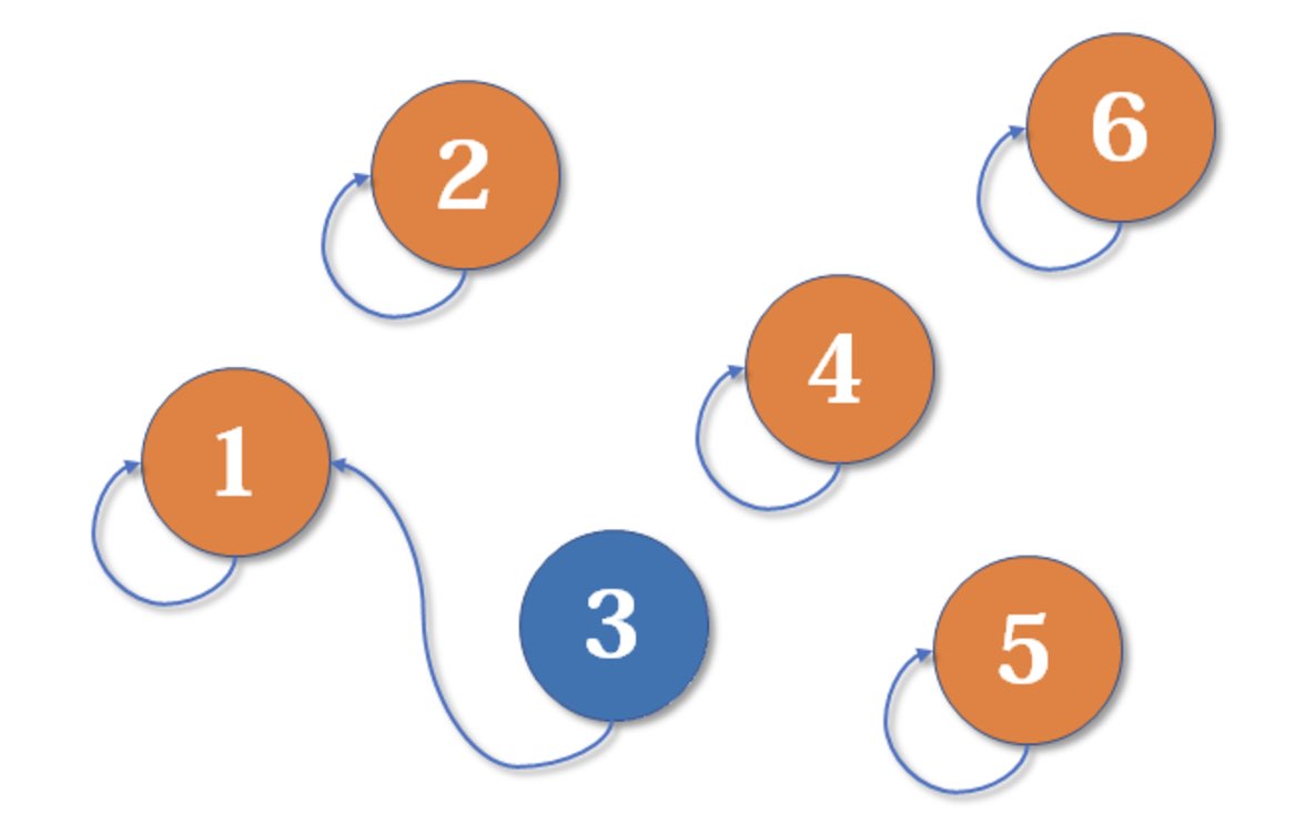 我们可以看到,在这种操作下,1 和 3 自然就在一个集合中了(成为朋友了)。