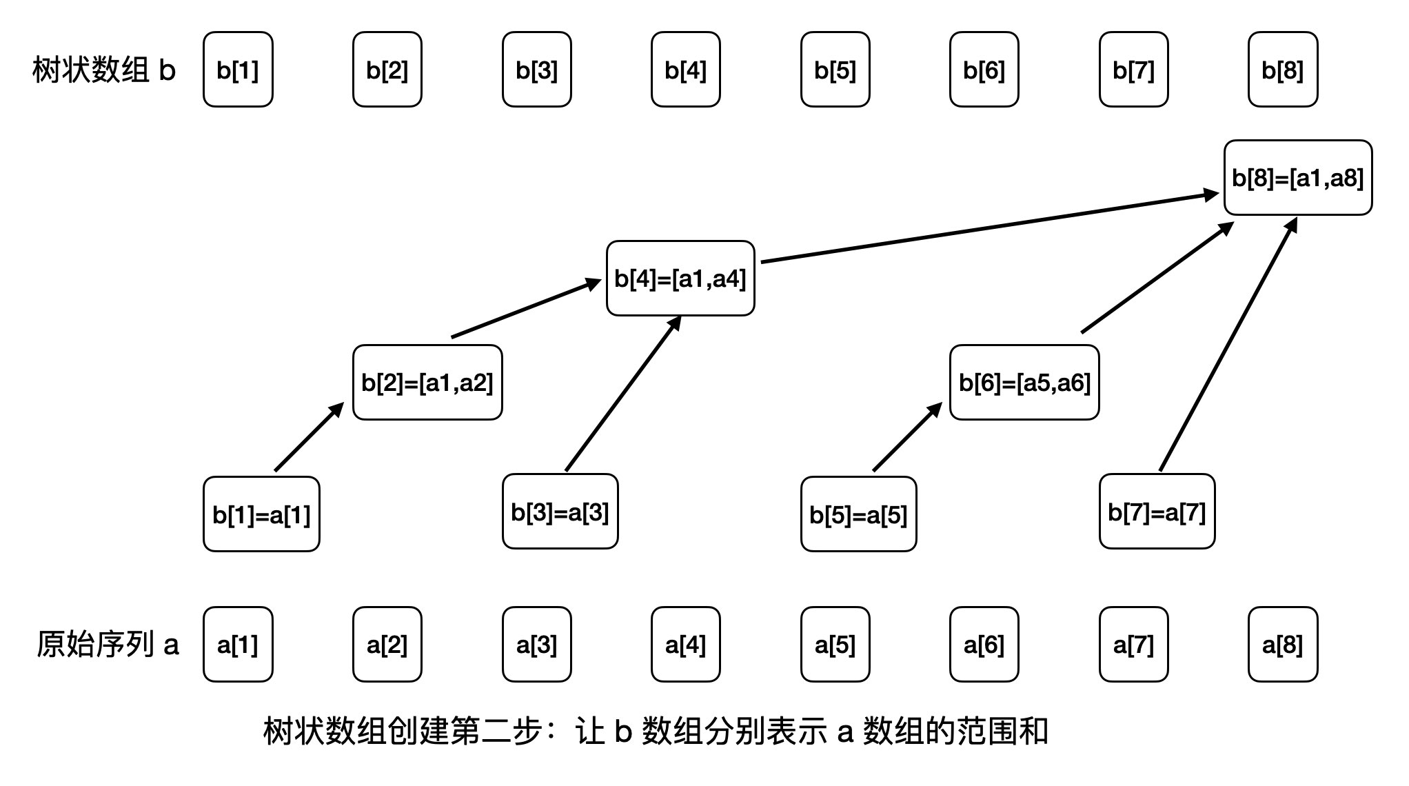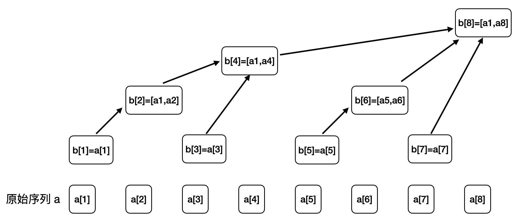 我们有了数组 b,我们让数组 b 相对于原始序列 a,按如下的关系来保存范围和: