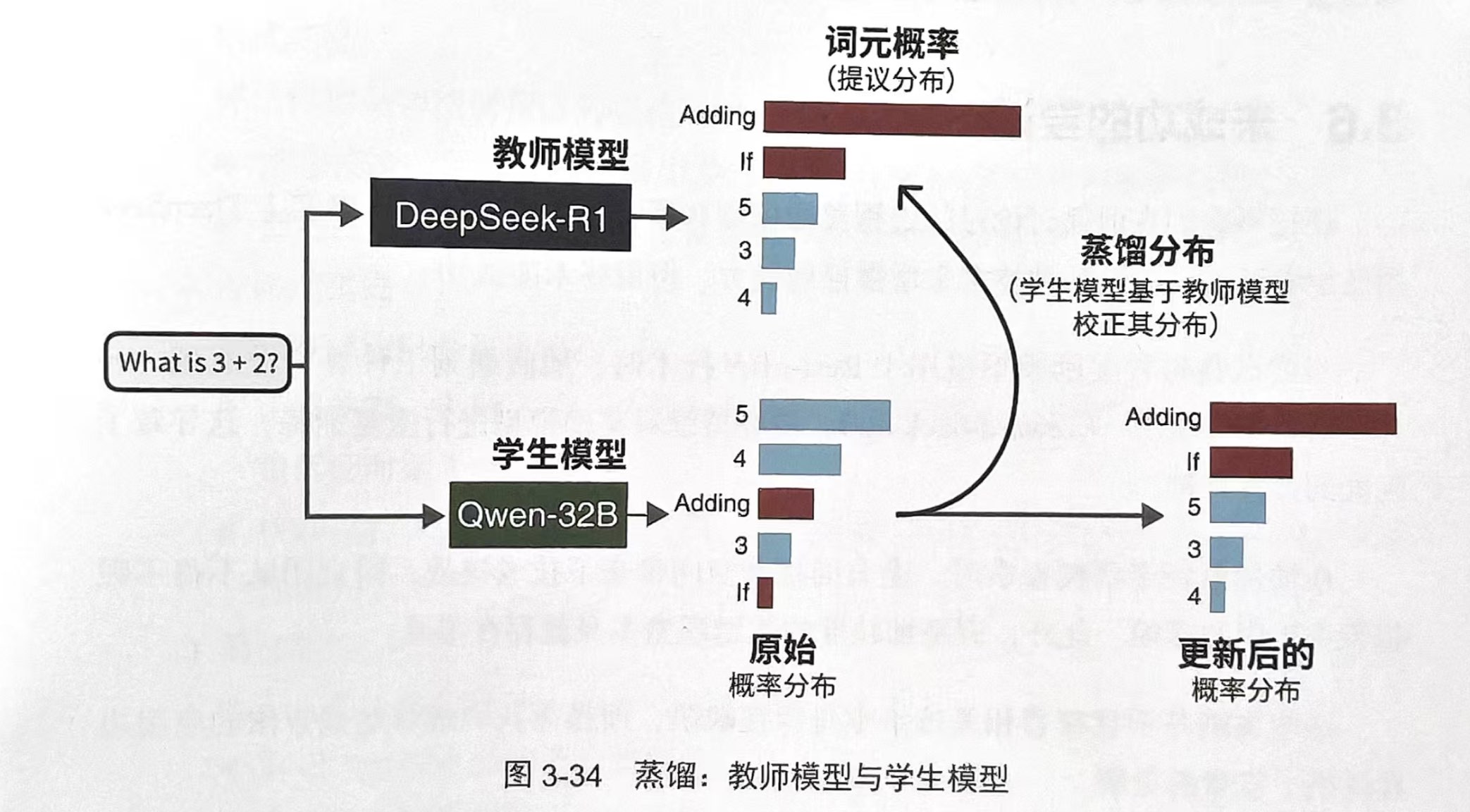 具体来说,研究团队用 DeepSeek 当老师模型,让 Qwen 当学生模型。当两个模型接收到相同的提示词后,均需要输出一个词元概率分布。在训练过程中,学生模型需要紧密跟随老师模型的分布特征(如下图)。