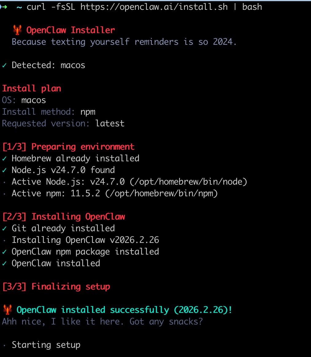 curl -fsSL https://openclaw.ai/install.sh | bash